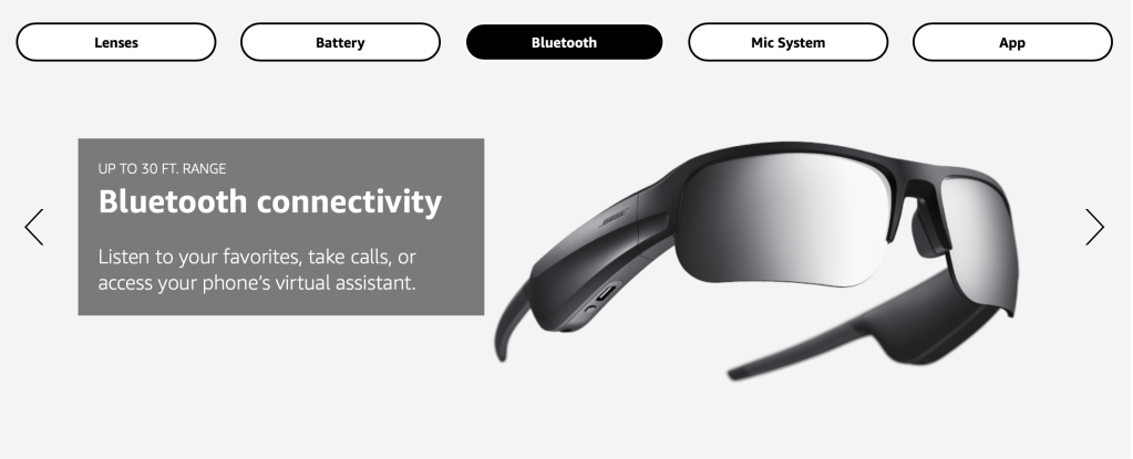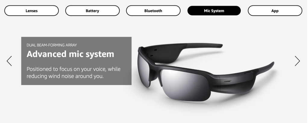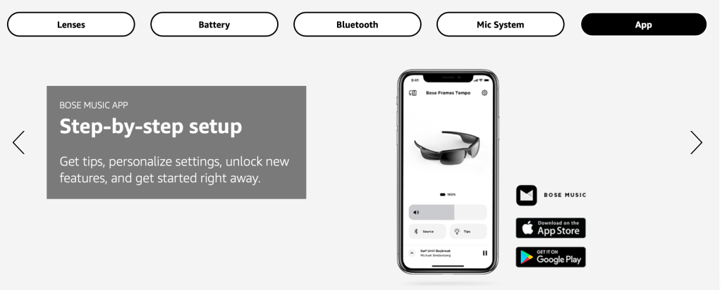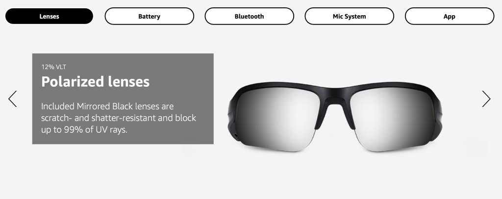 Created “From the Manufacturer,” bullets, and product description sections for Bose Frames Tempo, Bose Frames Tenor, and Bose Frames Soprano. Below is Bose Frames Tempo as an example.